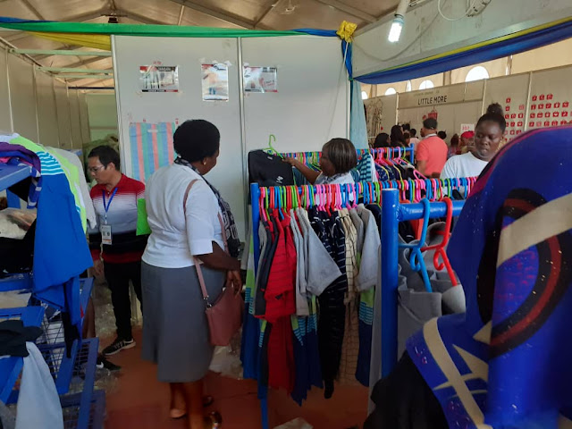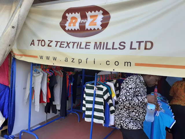 Baadhi ya bidhaa za nguo zinazozalishwa na viwanda cha A to Z mkoani Arusha zikiwa zimepangwa kwenye maonesho ya Biashara ya 43 ya Kimataifa jijini Dar es Salaam