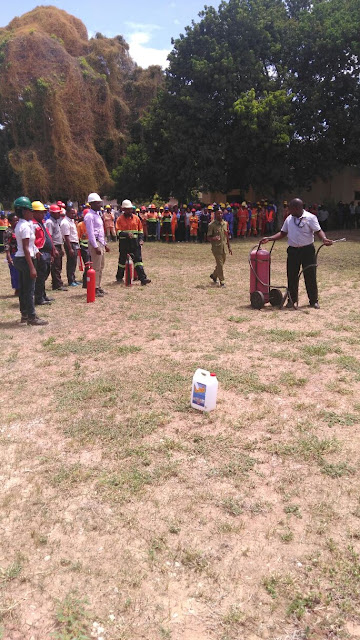 Akitoa Maelezo kwa wafanyakazi kampuni ya TIPPER, Mkaguzi  Msadizi wa Jeshi la Zimamoto Castory Willa amewaeleza namna mbalimbali za kupambana na moto kwa kutumia vifaa vya Zimamoto (Fire extinguisher).