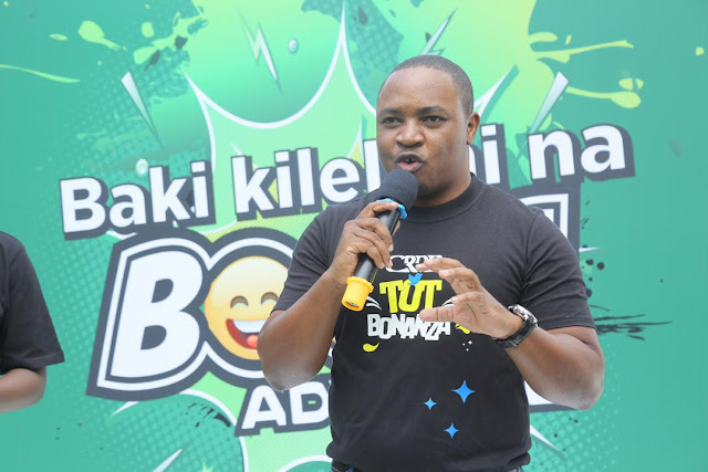 | Mkuu wa Kitengo cha Wateja Binafsi Benki ya CRDB, Stephen Adili akizungumza wakati wa uzinduzi wa huduma ya mikopo kwa wanafunzi wa vyuo vikuu ijulikanayo kama ‘Boom Advance’ uliofanyika wakati wa tamasha la michezo la CRDB TOT Bonanza wikiendi hii. |