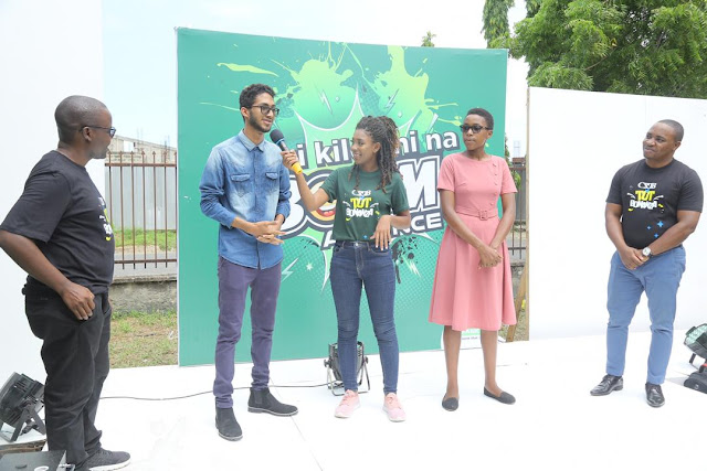 | Msheheraji katika uzinduzi wa huduma ya mikopo kwa wanafunzi wa vyuo vikuu ijulikanayo kama ‘Boom Advance’, Meena Ally akipata maoni ya mmoja wa wanufaika wa mkopo huo ambaye ni Mwanafunzi wa Chuo cha Usimamizi wa Fedha IFM, Mbaraka Mohammed uliofanyika wakati wa tamasha la michezo la CRDB TOT Bonanza wikiendi hii. Kulia ni Mkuu wa Kitengo cha Wateja Binafsi Benki ya CRDB, Stephen Adili na kushoto ni Meneja Mwandamizi wa Bidhaa wa Benki ya CRDB, Edwin Kasali. |