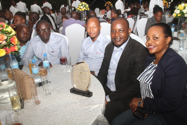Kaimu Afisa Mkuu wa Fedha Benki ya NMB, Benedicto Baragomwa (wa pili kulia) akiwa na baadhi ya wafanyakazi wenzake wakati wa utoaji tuzo.