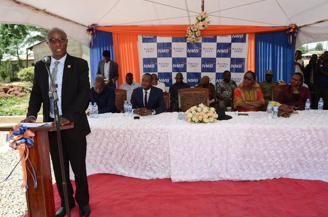 Mkuu wa Mkoa wa Geita – Mhandisi Gabriel Luhumbi Robert akitoa hotuba kwenye muda mfupi kabla ya uzinduzi wa Tawi la NMB Mbogwe, wilayani Mbogwe mwishoni mwa juma. Tawi la NMB Mbogwe linafanya Benki ya NMB kuwa na matawi 229 na ATM Zaidi ya 800 nchi nzima.