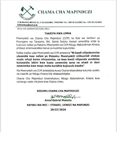 - BREAKING:Makamu Mwenyekiti CCM Mzee Kinana Ajiuzulu,Rais Samia amshukuru kwa kazi kubwa aliyoifanya