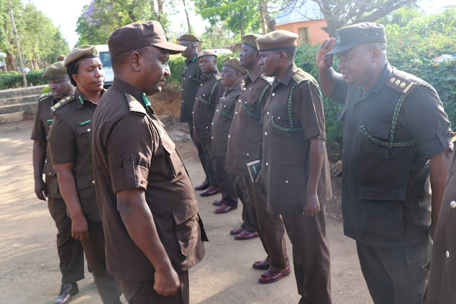 Mkuu wa Jeshi la Magereza nchini – CGP Phaustine Kasike akisalimiana na Maafisa wa Magereza Mkoani Manyara mara baada ya kuwasili Gereza Babati kwa ziara yake ya kikazi leo Novemba 16, 2019.