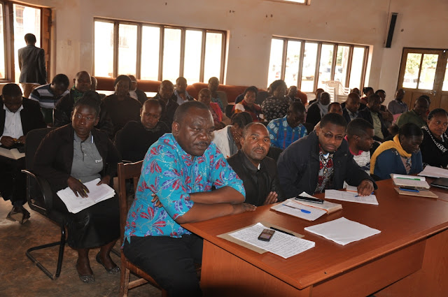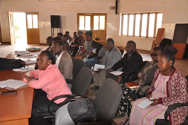 Baadhi ya wajumbe wa timu ya uendeshaji huduma za afya ya mkoa wa Njombe wakimsikiliza Naibu Katibu Mkuu Ofisi ya Rais TAMISEMI anayeshughulikia sekta ya Afya Dkt Dorothy Gwajima leo mjini Njombe