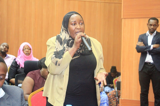 Mjumbe wa TUGHE Wizara ya Fedha na Mipango Bi. Mariam Kihange, akichangia mada wakati wa kikao cha Watumishi wa Wizara hiyo uliofanyika Jijini Dodoma.