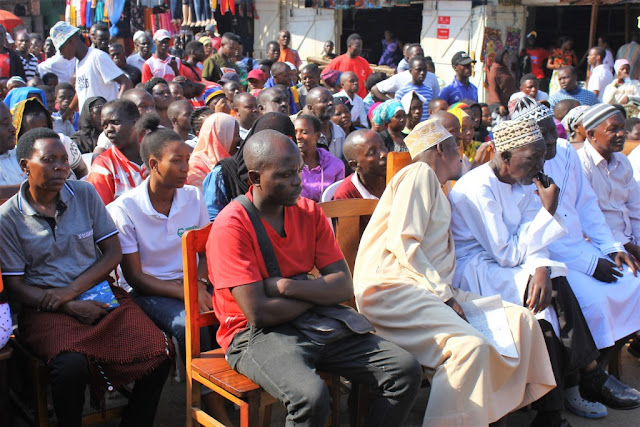 Baadhi ya wafanyabiashara wadogo pamoja na viongozi wa dini jijini Mwanza wakifuatilia wakifuatilia maelezo mbalimbali kuhusu katazo la kuzalisha, kusambaza na kutumia mifuko ya plastiki.