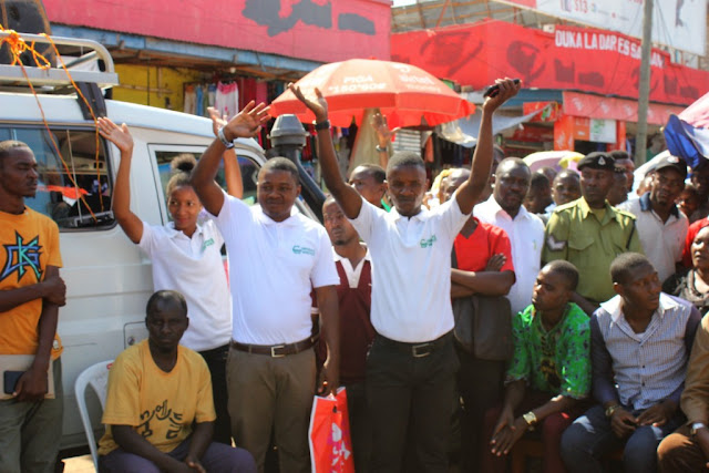 Baadhi ya wafanyakazi wa kampuni ya usafi ya GreenWestPro Kanda ya Ziwa wakiwapungia mikono wananchi baada ya kutambulishwa kwenye zoezi la kuhamasisha matumizi ya mifuko mbadala ambapo kampuni hiyo ni miongoni mwa wadau muhimu wa usafi na utunzaji wa mazingira.