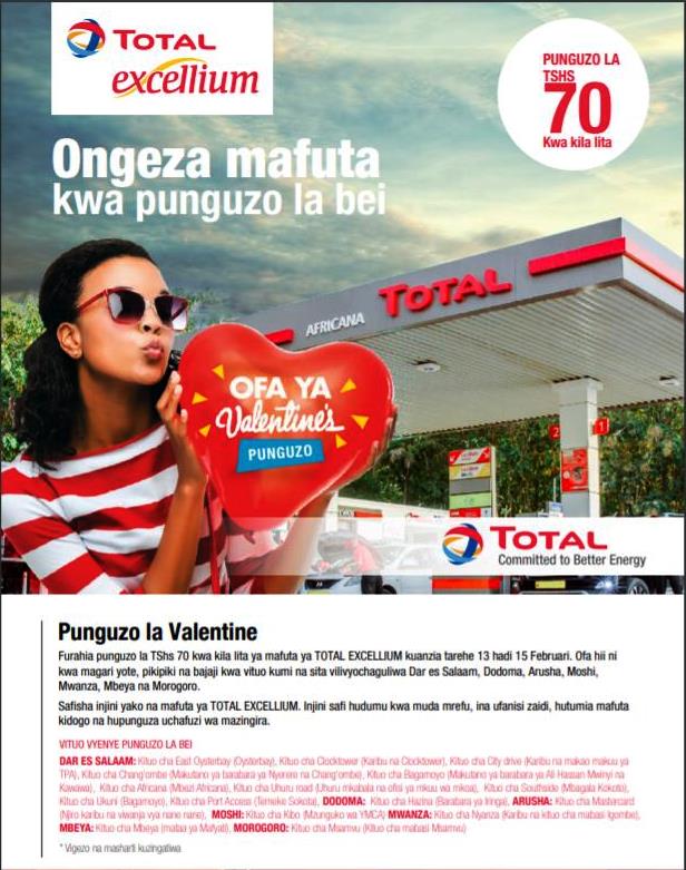 Kampuni ya Mafuta ya TOTAL, yapunguza Bei ya Mafuta ya TOTAL EXCELLIUM, kama Zawadi ya Valentine.