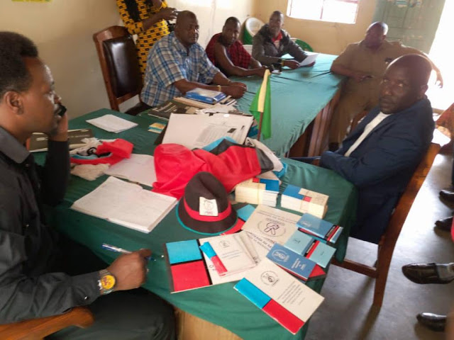 Katibu wa Chama cha mapinduzi (CCM) wilaya ya Longido Ezekiel Mollel jana amewapokea wanachama wa Chama cha Demokrasia na maendeleo (CHADEMA),akiwepo katibu wa Chama hicho wilaya Mch Isaya Nguchika na mwenezi wake Emmanuel Rekali(Habari picha na Pamela Mollel)