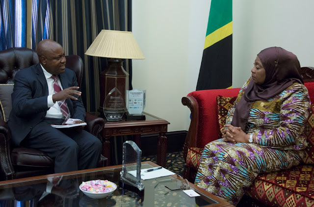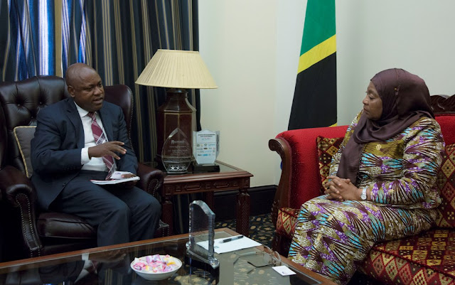 Makamu wa Rais wa Jamhuri ya Muungano wa Tanzania Samia Suluhu Hassan leo tarehe 26, Machi 2019 amekutana na kufanya mazungumzo na Mkurugenzi Mtendaji wa Benki ya NBC Ndugu Theobald Maingu Sabi ofisini kwake Ikulu, jijini Dar es Salaam.