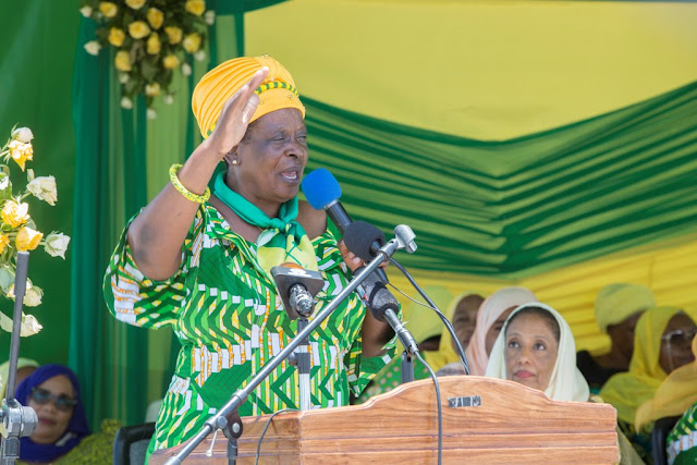 Mwenyekiti wa UWT Taifa Gaudensia Kabaka akihutubia kwenye Kongamano la UWT la kumpongeza Rais wa Zanzibar na Mwenyekiti wa Baraza la Mapinduzi Dkt. Ali Mohamed Shein kwa utekelezaji wa ilani ya uchaguzi ya Chama Cha Mapinduzi lililofanyika kwenye hotel ya Verde. (Picha na Ofisi ya Makamu wa Rais)