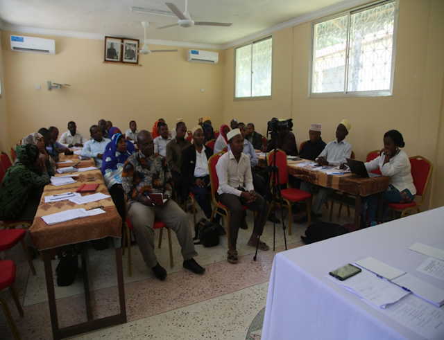 Baadhi ya viongozi kisiwani Pemba wakiwa kwenye kikao kazi kilichojadili masuala mbalimbali yakiwemo wajibu wa viongozi katika kusimamia miradi na vifaa vya TASAF.Kikao kazi hicho kilifanyika kisiwani Pemba.