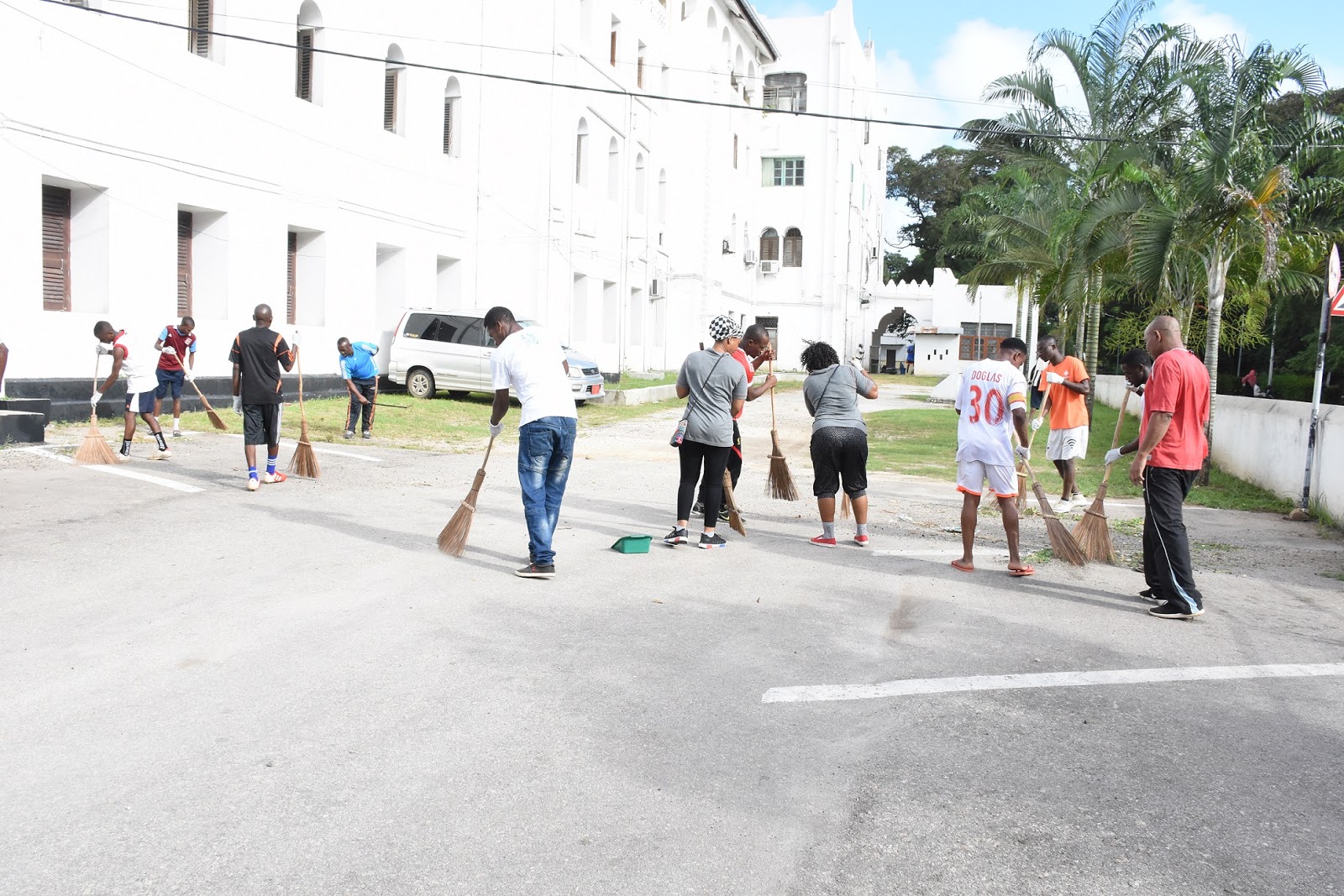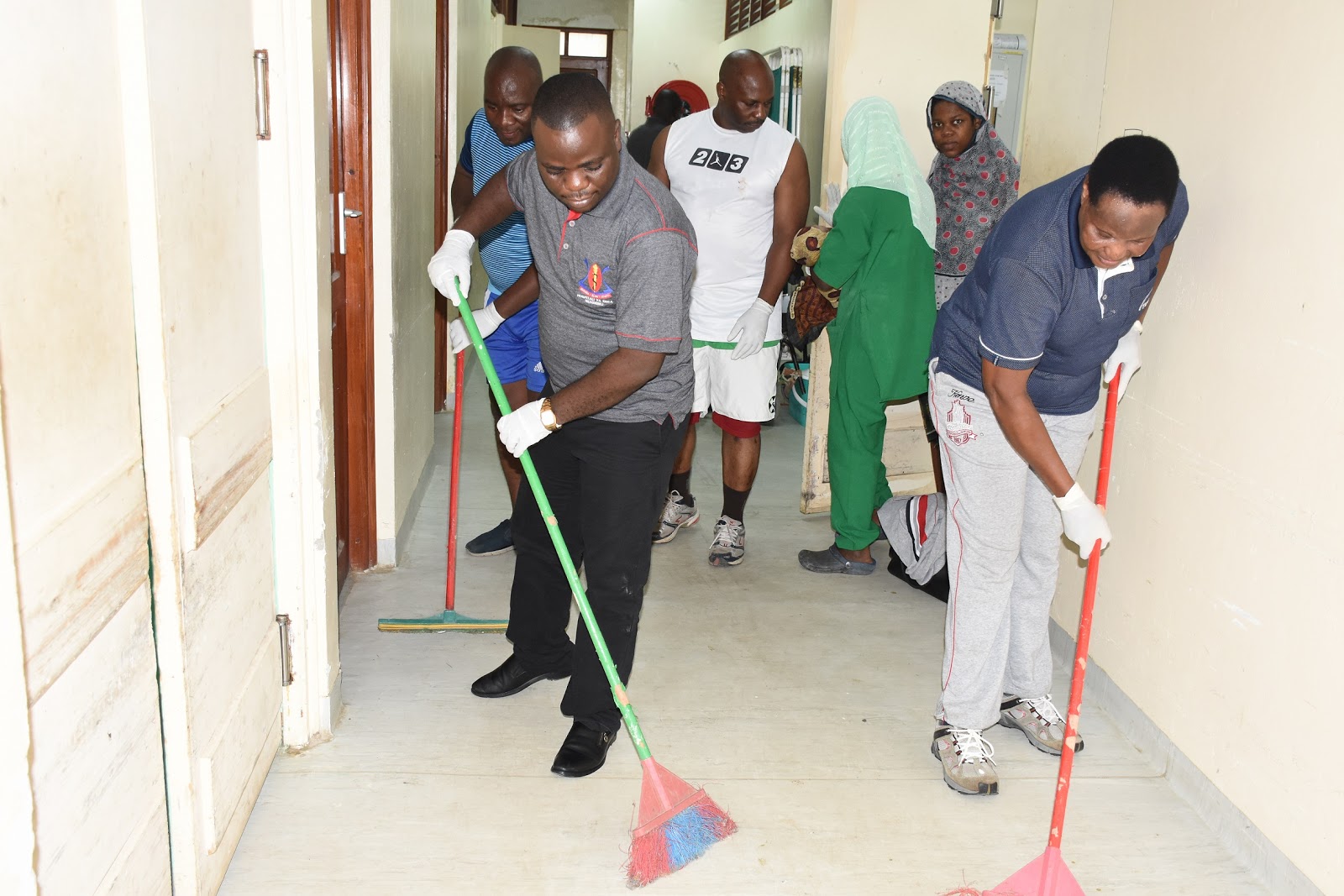 Baadhi ya wanamichezo wa Muhimbili wakishiriki zoezi la usafi katika hospitali ya Mnazi Mmoja Zanzibar.