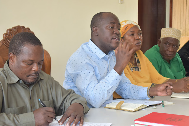 Naibu Waziri wa Maji Jumaa Aweso akizungumza na watendaji mbalimbali wa Mamlaka za Maji, watendaji wa serikali wakati alipotembelea miradi ya maji Mkuranga leo Mkoani Pwani.