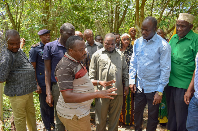 Mkuu wa Wilaya ya Mkuranga Filberto Sanga akizungumza jambo kwa Naibu Waziri wa Maji Jumaa Aweso wakati alipotembelea miradi ya maji ya Wilaya hiyo leo Mkoani Pwani.