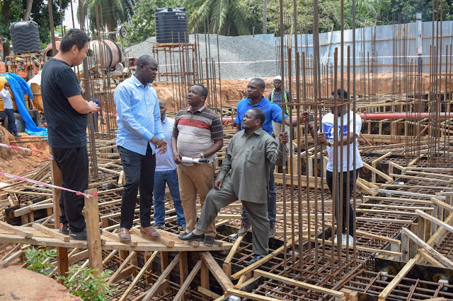 Msimamizi wa Mradi wa Mkuranga kutoka Mamlaka ya Majisafi na Usafi wa Mazingira Dar es Salaam DAWASA Mhandisi Bakari Mgaya akisoma taarifa ya mradi ws Mkuranga ambao umefikia hatua ya ujenzi wa tanki la Lita Milion 1.5 wenye thamani ya Bilion 5.5 wakati wa ziara ya Naibu Waziri wa Maji Jumaa Aweso leo Mkoani Pwani.