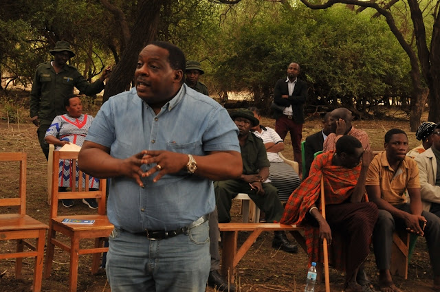 Dkt Freddy Manongi akiongea na watendaji pamoja na wananchi wa kata ya Eyasi kuhusu miradi mbalimbali ya kijamii inayofadhiliwa na Mamlaka ya Hifadhi ya Ngorongoro.