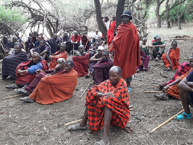 Baadhi ya wananchi wa Kata ya Eyasi iliyoko ndani ya Hifadhi ya Ngorongoro wakimsikiliza Dkt Manongi.