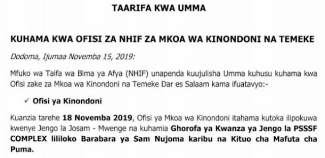 NHIF KUHAMISHA OFISI ZAKE ZA MKOA WA KINONDONI NA TEMEKA