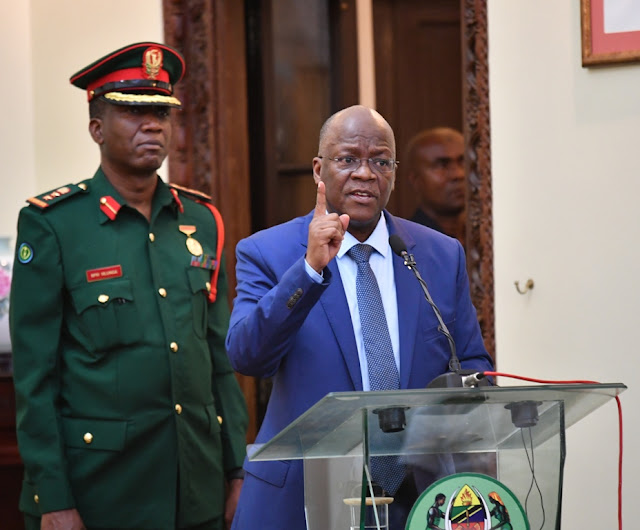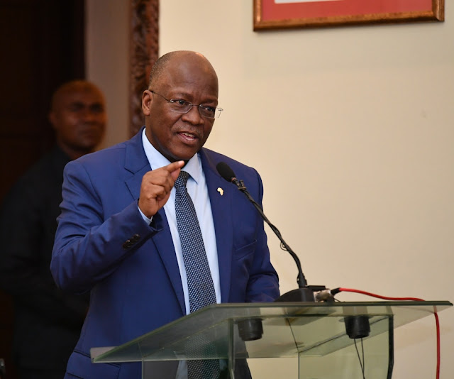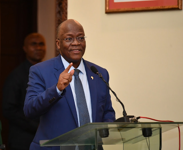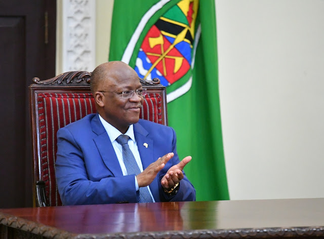 Rais wa Jamhuri ya Muungano wa Tanzania Dkt. John Pombe Magufuli akipiga makofi wakati Bondia Hassan Mwakinyo alipokuwa akizungumza.