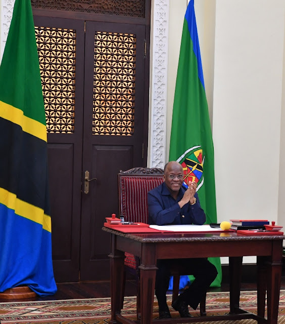 Rais wa Jamhuri ya Muungano wa Tanzania Dkt. John Pombe Magufuli akisikiliza salamu mbalimbali zilizokuwa zikitolewa Ikulu jijini Dar es Salaam mara baada ya kumuapisha Adolf Ndunguru kuwa Naibu Katibu Mkuu wa Wizara ya Fedha na Mipango (Sera) pamoja na Msafiri Mbibo kuwa Naibu Kamishna Mkuu wa Mamlaka ya Mapato Tanzania (TRA.