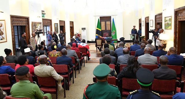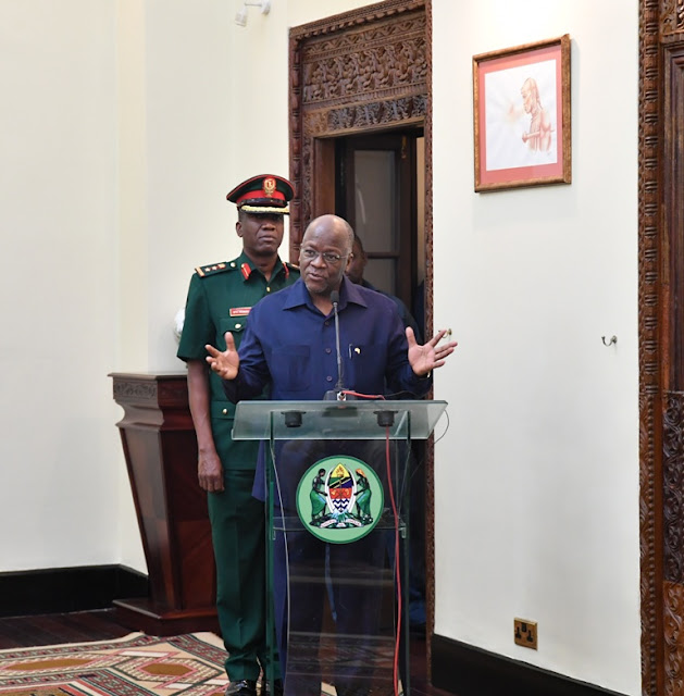 Rais wa Jamhuri ya Muungano wa Tanzania Dkt. John Pombe Magufuli akizungumza mara baada ya kuwaapisha viongozi hao Ikulu jijini Dar es Salaam.