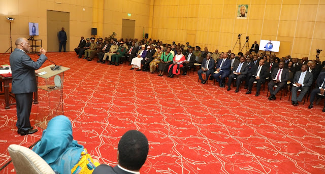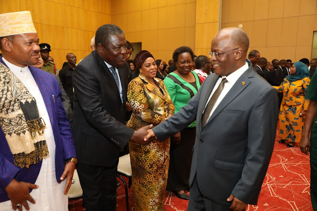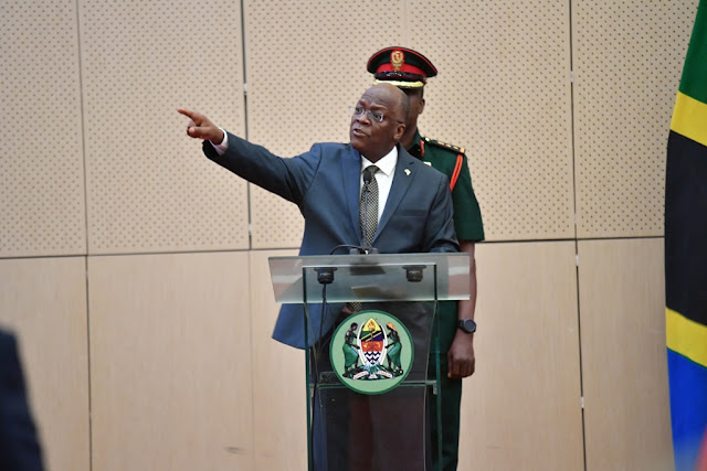 Rais wa Jamhuri ya Muungano wa Tanzania Dkt. John Pombe Magufuli akiongea baada ya kumuapisha Kamishna Valentino Longino Mlowola kuwa Balozi wa Tanzania nchini Cuba na kupokea Ripoti ya Utendaji Kazi wa Taasisi ya Kuzuia na Kupambana na Rushwa (TAKUKURU) kwenye hafla iliyofanyika Ikulu jijini Dar es salaam Alhamisi Machi 28, 2019.