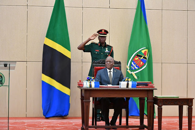 Rais wa Jamhuri ya Muungano wa Tanzania Dkt. John Pombe Magufuli baada ya kupokea vitabu vya Ripoti ya Utendaji Kazi wa TAKUKURU kwenye hafla iliyofanyika Ikulu jijini Dar es salaam Alhamisi Machi 28, 2019.