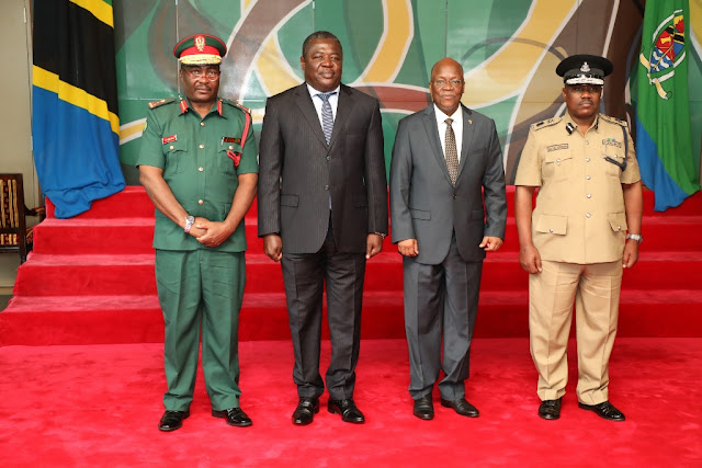 Rais wa Jamhuri ya Muungano wa Tanzania Dkt. John Pombe Magufuli akipeana mikono na Mkurugenzi Mkuu wa Taasisi ya Kuzuia na Kupambana na Rushwa (TAKUKURU) Kamishna Diwani Athumani na akiwa na Naibu wake Brigedia Jenerali John Mbungo pamoja na Kamishna Valentino Longino Mlowola baada ya kumuapisha kuwa Balozi wa Tanzania nchini Cuba na kupokea Ripoti ya Utendaji Kazi wa TAKUKURU kwenye hafla iliyofanyika Ikulu jijini Dar es salaam leo Alhamisi Machi 28, 2019.
