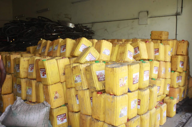 Aidha waligawa pia madumu 1241 ya mafuta ya kula yenye lita 20 kila mmoja thamani yake ya forodha ni milioni 43, 191, 652.14 na ushuru wake ni milioni 15,117,078.24 na VAT yake ni milioni 10,495,571.44 kwa hiyo thamani ya vifaa vilivyogawiwa ni vyenye thamani ya bilioni milioni 55,983,043.74 zenye thamani ya ushuru wa forodha miloni 27,908,469.84 na kodi ya ongezeko la thamani (VAT) ni miloni 15,100,472.41.