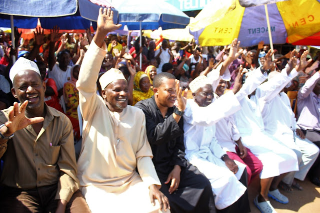 Wananchi na viongozi mbalimbali wa dini wakinyoosha mikono kuunga mkono katazo la matumizi ya mifuko ya plastiki.