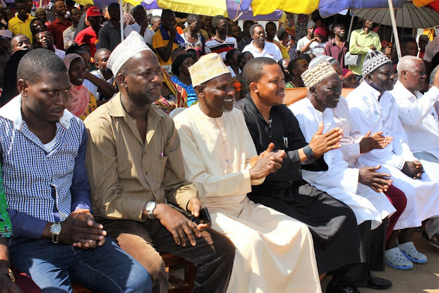 Viongozi wa dini, wafanyabiashara wadogo na wananchi wakifuatilia zoezi hilo.