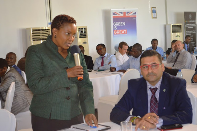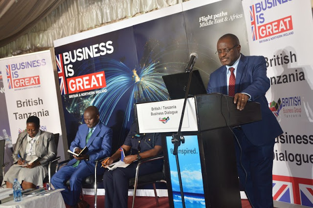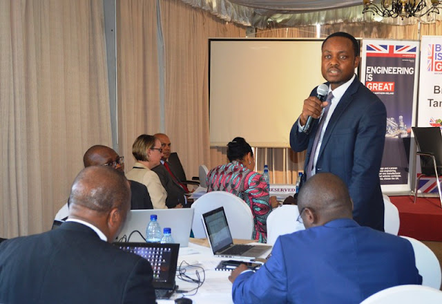 Kamshina wa Kazi kutoka Ofisi ya Waziri Mkuu, Bw.Gabriel Malata akichangia hoja kuhusu vibali vya ajira wakati wa mkutano wa wawekezaji wa Uingereza uliofanyika Jijini Dar es Salaam.