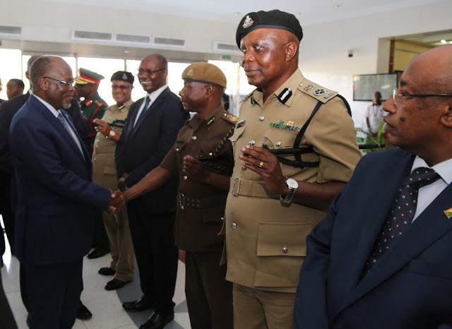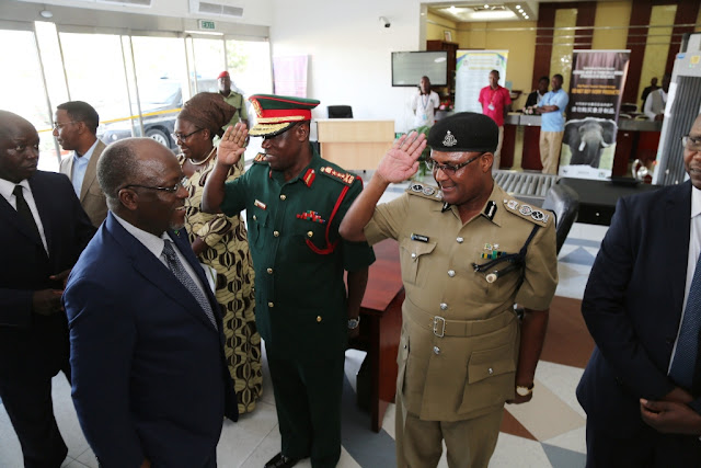 Rais wa Jamhuri ya Muungano wa Tanzania Dkt. John Pombe Magufuli akisalimiana na wakuu wa vikosi vya ulinzi na usalama katika uwanja wa ndege wa kimataifa wa Julius Nyerere jijini Dar es salaam leo Jumamosi Januari 28, 2017 wakati akielekea kupanda ndege kuelekea Addis Ababa, Ethiopia, kuhudhuria Mkutano wa Kilele wa 28 wa Wakuu wa nchi za Umoja wa Afrika (AU)