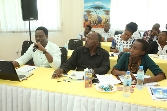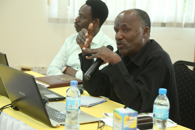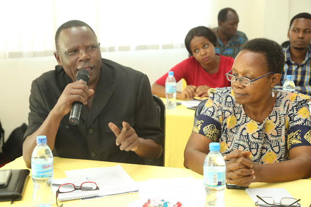 Mtafiti mshiriki wa ESRF, John Shilinde (kushoto) akichangia maoni wakati wa mkutano wa saba wa kitaifa wa utafiti wa uunganishaji wa mifumo ya kuinua uchakataji wa bidhaa za kilimo uliofanyika ukumbi wa Taasisi ya Utafiti wa Uchumi na Jamii-ESRF jijini Dar es Salaam.