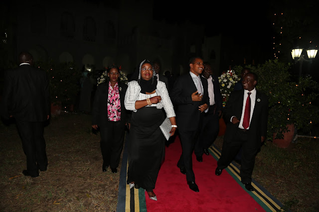 Rais Mstaafu Jakaya Mrisho Kikwete na mkewe Mama Salma Kikwete wakiwasili kwenye viwanja vya Ikulu jijini Dar es salaam Alhamisi usiku kwa ajili ya mchapalo maalum ulioandaliwa na Rais wa