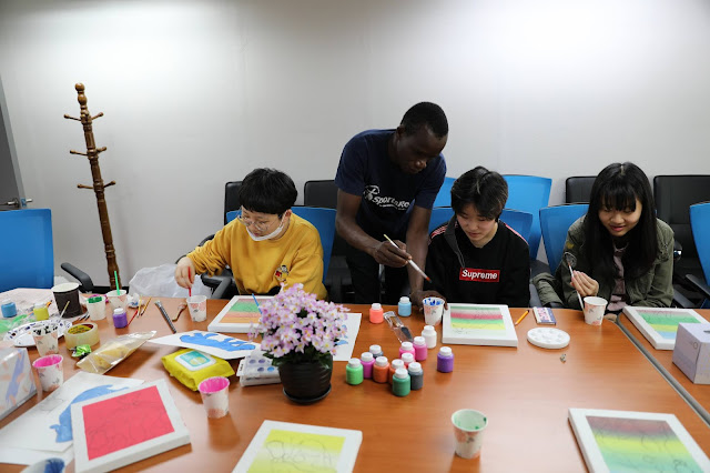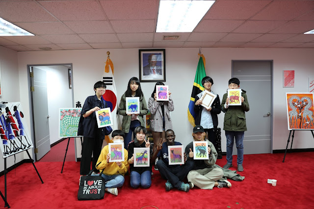 | Mtaalam wa michoro maarufu ya Tanzania “Tingatinga” akiwafundisha wananchi wa Jamhuri ya Korea kuchora michoro hiyo |