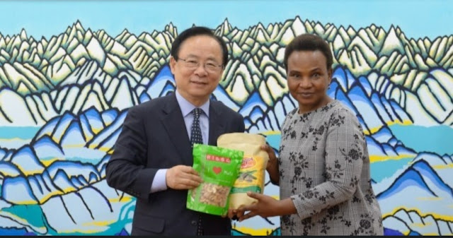 | Mhe. Balozi Masuka akimkabidhi Spika wa Bunge la Jamhuri ya Korea Mhe. Lee Juyoung baadhi ya mazao yanayolimwa Tanzania ikiwemo korosho wakati wa wiki ya Tanzania kuelekea maadhimishoya miaka 55 ya Muungano wa Tanganyika na Zanzibar |