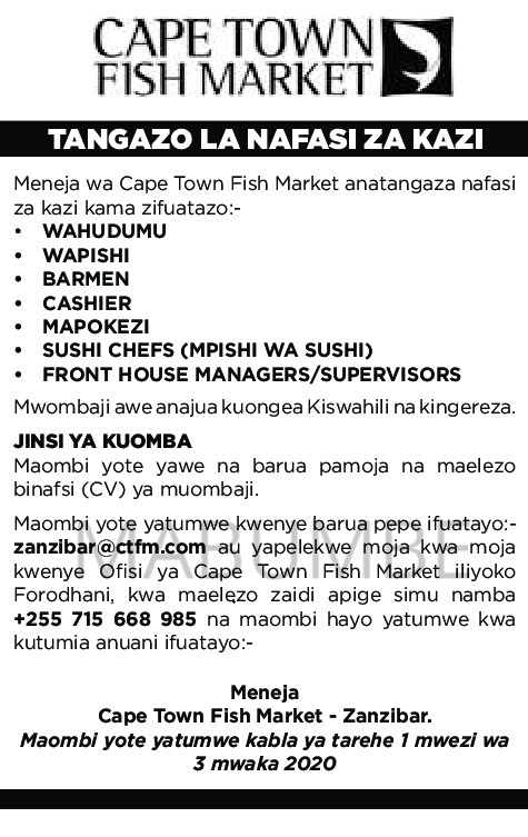 Cape Town Fish Market Jobs in Tanzania February, 2020