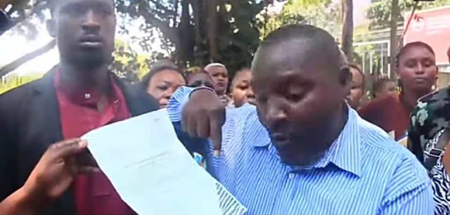 baadhi ya wafanyakazi wakionyesha barua walizosimamishiwa nazo kazi