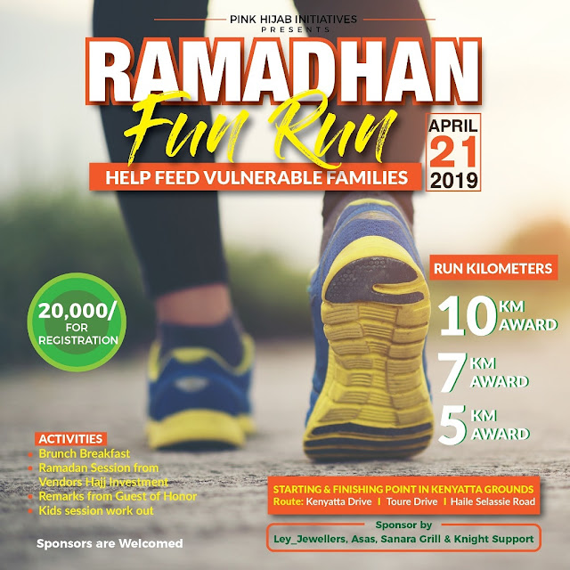 Tasisi ya Pink Hijab Initiatives imeandaa mbio na Matembezi ya Kilometa kumi kuanzia Viwanja vya Green Ground Osterbay na kuishia katika Viwanja hivyo kwa kupitia barabara ya Kenyata, Chole Road,Karume Road , Haile Salasi Road kupitia Coco Beach na kurudi katika Viwanjani hapo.