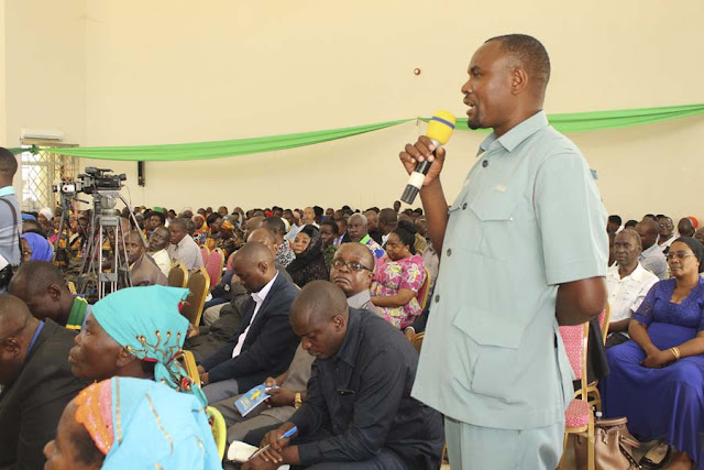 Miongoni mwa wachangiaji katika kongamano la Mazingira, Juma Elias akitoa mchango wa mawazo wa namna ya kulinda mazingira kutokana na uharibifu mkubwa wa mazingira unaotokana na ukataji miti ovyo mkoani Tabora.( PICHA ZOTE NA LUSUNGU HELELA- MNRT)