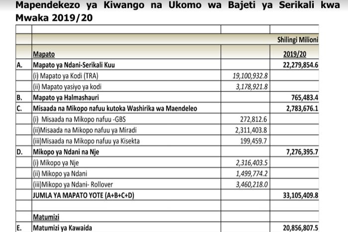 B. SERA ZA MAPATO NA MATUMIZI KWA MWAKA 2019/20