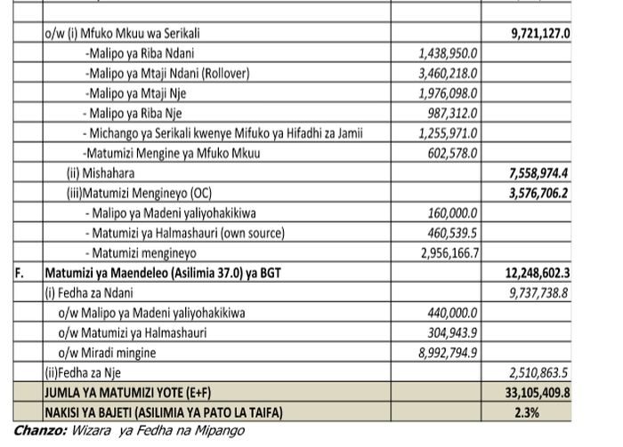 C. Kiwango na Ukomo wa Bajeti kwa Mwaka 2019/20